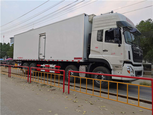 國五東風天龍前四后八廂長9.4米冷藏車廂體采用內外玻璃鋼板制作,中間8公分保溫板,鋁花紋底板,不銹鋼門框和鎖件,后對開門。箱體右中靠前單側門,底板為鋁花紋板,安裝凱雪制冷機組,提供整車合格證及上戶發票。想了解更多國五東風天龍前四后八廂長9.4米冷藏車可以來電咨詢13607289999(黃俊)15897606159(葉冰花)。