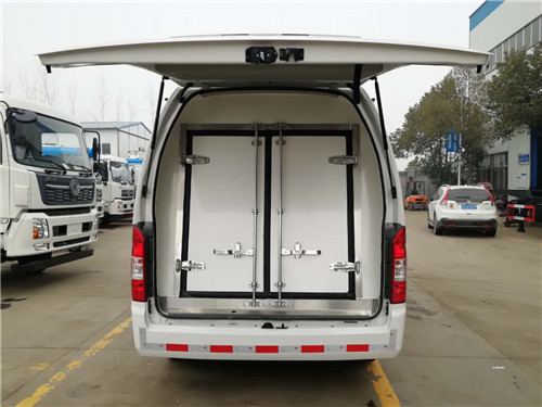 國六福田G9面包冷藏車上裝配置:廂體采用內(nèi)玻璃鋼板,內(nèi)膽式一次成型工藝制作,廂體保溫材料采用5個(gè)厚聚氨酯發(fā)泡,采用漢雪制冷機(jī)組溫度可控,最低可調(diào)-15度制冷機(jī)組,其它標(biāo)配。國六福田G9面包冷藏車圖片展示: