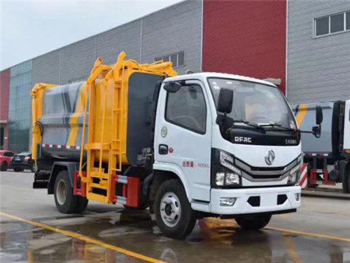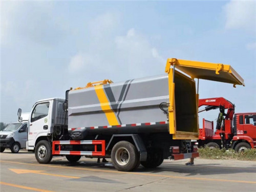 國六東風多利卡D6自裝卸式垃圾車上裝配置:箱體采用邊二底三,優質碳鋼,帶自卸功能,尾部裝有橡膠密封條,掛桶垃圾車可根據客戶要求搭配120升或240升塑料桶和鐵桶。