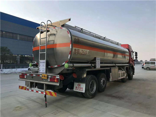 解放前四后六29方普通液體運輸車該車為非危化品運輸車;罐體有效容積28.2立方米,該車允許運輸介質的最大密度:650千克/立方米,罐體外形尺寸(長×寬×高)(mm):8400×2500×1700