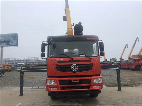 國六東風隨車吊上裝10噸4節直臂吊機、雙聯泵、工作半徑13、8米、5800*2400*550東風原廠510國標8個厚滾鋼通副梁、Q235國標邊三底五高強度降重心一化貨箱