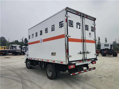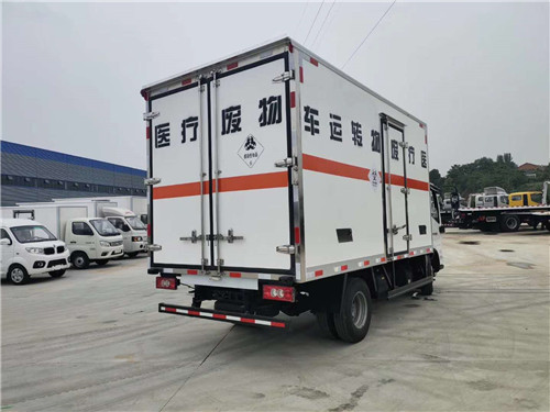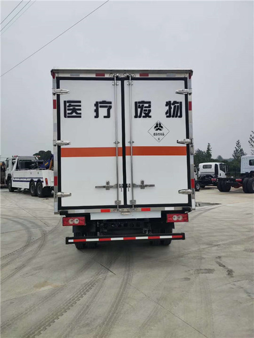 國六福田奧鈴捷運醫療廢物轉運車產品配置:國六排放,3360軸距,全柴發動機,130馬力,帶原裝空調,5檔變速箱,后雙輪,中控門鎖,動門窗。廂體外蒙皮白色玻璃鋼,內蒙皮不銹鋼板,廂內安裝紫外線消毒燈,噴霧消毒裝置,內密封門,單開側門,廂體外置不銹鋼污水收集箱,消毒液藥箱。
