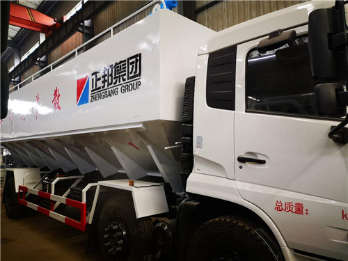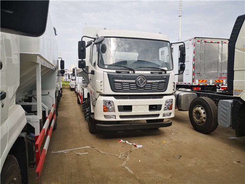東風(fēng)天錦小三軸30方飼料車罐體采用4mm優(yōu)質(zhì)碳鋼板制作,罐體內(nèi)分為四個(gè)倉(cāng),可獨(dú)立控制各分倉(cāng)卸料順序和速度,整車3條蛟龍(底部水平絞龍、尾部垂直絞龍、頂部卸料絞龍),由液壓泵帶動(dòng)各絞龍工作,頂部絞龍液壓控制舉升,可左右旋轉(zhuǎn)180°,整車尺寸:10990×2490×3850mm,想了解更多東風(fēng)天錦小三軸30方飼料車價(jià)格,圖片,參數(shù)可以來電咨詢!