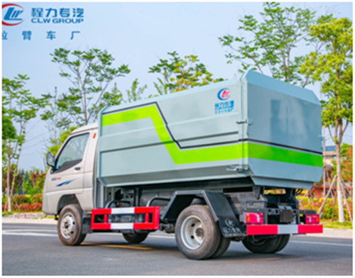 唐駿后雙輪國六掛桶垃圾車上裝配置:箱體采用邊三底三碳鋼板制作,箱體前部側面帶有掛桶提升機構,可自動舉升垃圾桶倒入垃圾,帶自卸功能,帶掛桶提升機翻蓋尾部裝有橡膠密封條,防污水滴漏,掛桶垃圾車可根據客戶要求搭配240升塑料桶。