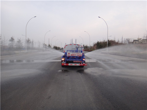 后灑:車(chē)輛尾部具有兩個(gè)噴灑扇形水的噴頭,可有效的對(duì)路面進(jìn)行降塵、降溫及道路施工養(yǎng)護(hù)。