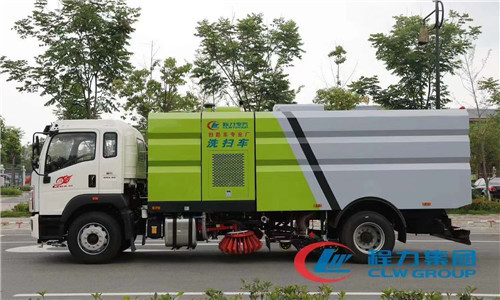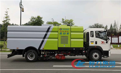 國六重汽洗掃車整車型號CLW5180TXSZ6型洗掃車,底盤型號ZZ1187K561DF1Z,總質量(Kg):18000,額定載質量(Kg):5370,5305,整備質量(Kg):12500,駕駛室準乘人數(人):2,3人,外形尺寸(mm):7590,7890,8090,8590,8990×2490×3140mm,此車為道路洗掃專用車輛,專用裝置為掃刷.防護裝置均采用Q235A材質,均采用焊接連接,專用裝置掃刷代替部分側面防護,掃刷離地高為(mm):180,國六重汽洗掃車圖片展示: