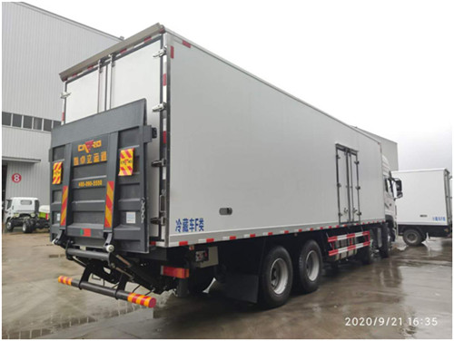 9.6米福田歐曼EST冷藏車廂體內尺寸9400X2450X2500 9.6米福田歐曼EST冷藏車搭載康明斯6缸460馬力發動機/排量為11.8L/扭矩為2300N.m,法士特12速高低擋變速箱(加裝液力緩速器),福田歐曼EST平頭2490mm高頂雙臥駕駛室,全鋁600L主燃油箱,有燃油箱鎖,5T雙前橋,10T單級減速雙后橋(440后橋),主減速比3.7,整體式動力轉向器,前后橋康邁免維護輪端, 12R22.5子午胎,國產鋼制輪輞,自動調整臂,4通道ABS,四氣囊全浮式駕駛室懸置,液壓電動翻