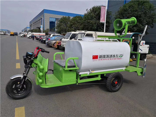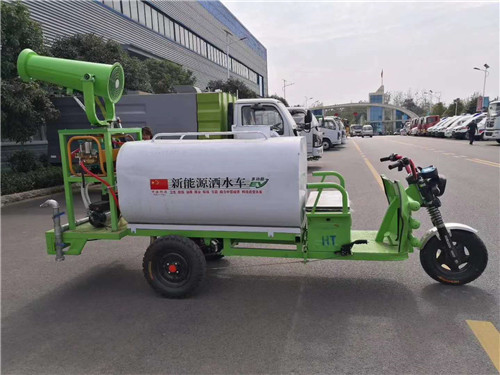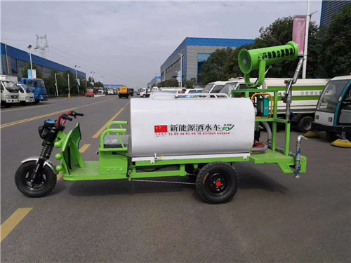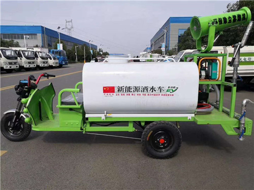 三輪灑水車: 3700*1200*2000,超威牌48v45ah電池,10米霧炮, 前:4.0,后:4.5,尼龍胎,配有:后灑,高炮,側噴,廂體容積: 950L。三輪灑水車圖片展示: