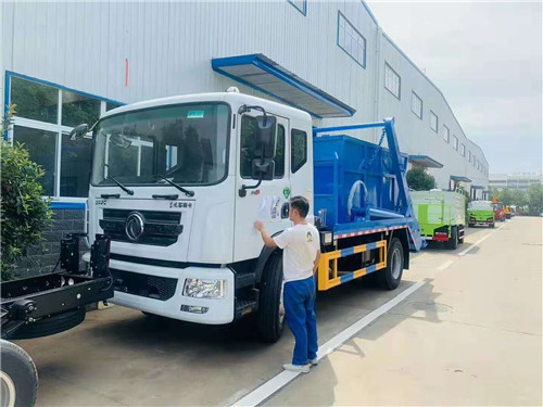 國六東風多利卡D9擺臂式垃圾車采用東風D9底盤 ,加裝統一配套液壓舉升總成,通過左右兩臂裝運全國統一擺臂式垃圾斗,可一車多斗,帶自卸功能,達到安全穩定,性能可靠。垃圾斗廂體分為按擺臂式和地坑地面兩用式配置不同形式的垃圾斗。可加裝密封蓋,防止泄露飛揚污染,以適應不同環境使用要求 采用國內領先技術及軍工企業配件,質量可靠。
