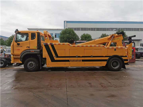 重汽豪瀚一拖一清障車該車最大托牽質量可達38T,最大起吊質量12T,最大拖舉質量13T,最大起吊高度4830mm。結構形式為托吊聯體型,且采用美國先進的雙鉸點機構,在托臂負重時可以折疊托臂;吊臂截面采用六邊型,其強度、穩定性均遠大與四邊型結構。