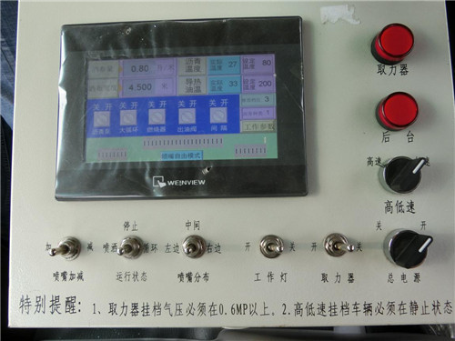 4 瀝青的灑布控制不僅可以在駕駛室內通過智能觸屏電腦完成,也可以在車尾的操作平臺上進行控制;