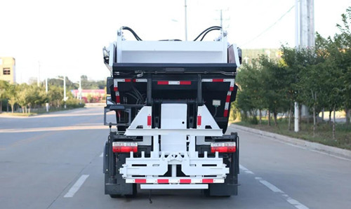 5、后垃圾箱配置雙桶上料機構,可匹配120L/240L/660L標準塑料桶;