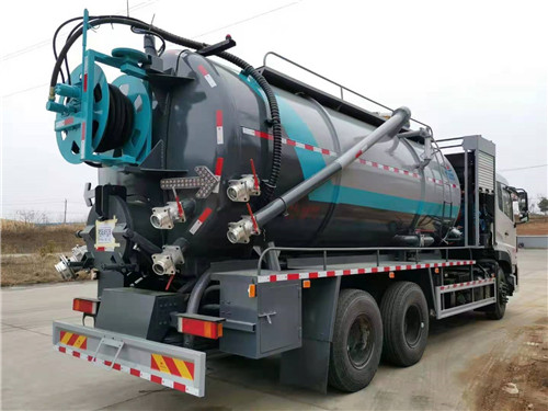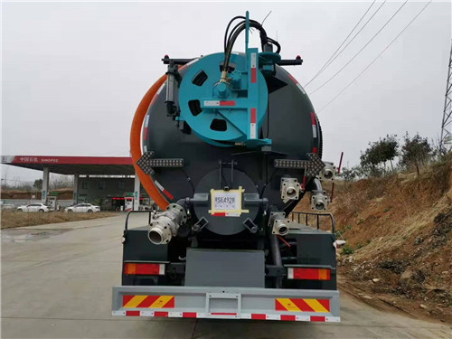 (2)東風(fēng)天龍后八輪清洗吸污車上裝配置:罐體容積約23方,8m碳鋼板材,清水約5方,其余為吸污,兩倉球閥互通。兩倉中間用封頭,品浮330流量高壓清洗泵,配60米高壓管。選裝安裝山東昊賽42水環(huán)泵配420馬力副發(fā)。卷盤裝后封頭180度旋轉(zhuǎn),后封頭液壓打開。后封頭上一個600水泥蓋放污,可液壓開啟,側(cè)面一個6寸不銹鋼偷排閥,后封頭一個6寸不銹鋼出口,一個100寸進口直通罐頂,罐內(nèi)鋪不銹鋼板,加強型車架,自卸車設(shè)計,罐體尾部箭頭燈,帶一個視污窗口。帶8米吸污管。其余廠內(nèi)標配。