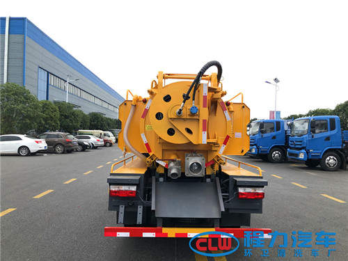 8、真空泵帶排水閥,泵座設(shè)計(jì)離地高度26公分以上,通過率高 9.后高壓卷盤三角式雙插栓固定,穩(wěn)定可靠,卷盤加大加厚,帶淋管器(高壓管作業(yè)后,往回收時(shí),可以沖洗高壓管)