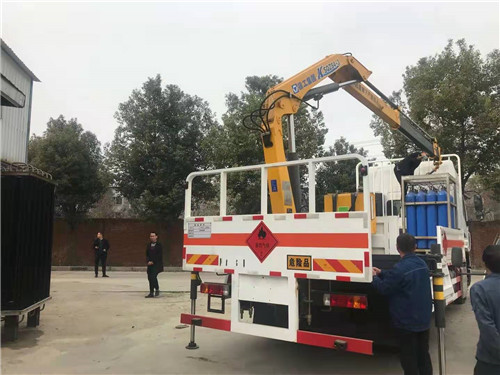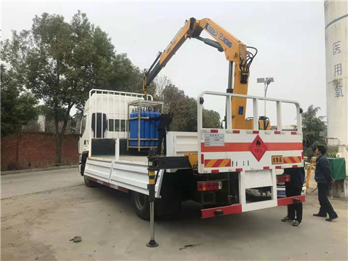 東風柳汽國六氣瓶運輸車該車為危險貨物運輸車輛,吊機型號/最大起升載荷(kg)/吊機重量(kg)/整備質量(kg)為:SQZ84/4000/1200/8055;運輸獨立容器(瓶)包裝的貨物;危險貨物類項號:運輸具有獨立容器包裝的易燃氣體(類項號為2.1),運輸具有獨立容器包裝的非易燃無毒氣體(類項號為2.2);其他說明:該車僅使用排氣管前置、前輪為盤式制動器、裝配子午線輪胎的底盤,轉向輪安裝輪胎爆胎應急防護裝置,后軸采用空氣懸架,安裝導靜電帶;