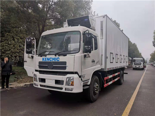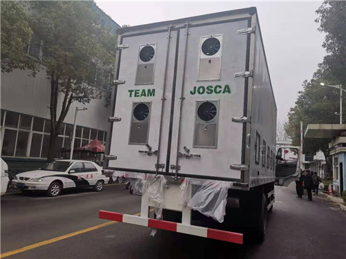 出口非洲東風天錦6.8米雞苗運輸車定制要求:箱體采用內外玻璃網,中間8cm保溫板,鋁花紋板,箱體前板帶2個百葉窗,箱體兩側下方各裝5個百葉窗(帶小門可開啟),箱體后門4個電子扇(帶滑門),箱體頂部安裝2個天窗,天窗兩邊各加裝4個電子扇,底板帶2道通風道,箱體兩側上方各帶2道出風口,加裝開利C500制冷機組,廂內按客戶提供圖片做3層貨架。想了解更多東風天錦6.8米雞苗運輸車價格, 圖片,參數可以來電咨詢13607289999(黃俊)15897606159(葉冰花)。