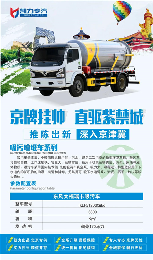 吸糞車,主要應用在化糞池,污水溝和下水道等環境下清理清潔工作的專用車輛,與灑水車,垃圾車,并稱為三大環衛車型。主要為城鄉環衛部門抽吸和運送糞便及其它污水。適用于抽吸糞便,污水、污泥漿和混有較小懸浮雜物的液體,適用于市政環衛、大中小型工礦企業,小區、學校,化糞池清理轉運,城市管道清理疏通,工廠沼液沼渣清理等。