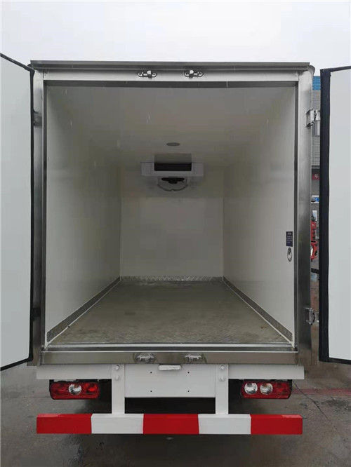 廂體內(nèi)外采用玻璃鋼材質(zhì),中間8cm聚氨酯發(fā)泡保溫層,廂體底板材質(zhì)采用花紋防滑鋁地板,配不銹鋼門鎖件,選裝側(cè)門。