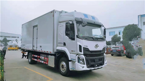 國六東風柳汽乘龍H5冷藏車(高頂雙臥豪華版)底盤采用東風柳汽H53S駕駛室,YCS06245-60A,8JS95E-C,3.6T前橋,后橋9T/4.11板簧11/12+9,264(6)車架,350L鋁合金油箱,國產方向機,275/80R22.5,機械全浮式駕駛室懸置、液壓機械翻轉、夾層玻璃、電動玻璃升降器、氣囊減震司機座椅,LCD液晶儀表、自動空調、定速巡航系統、ABS、外部遮陽罩、鋁合金儲氣筒、中控鎖、自動調整臂、多態開關、真皮多功能方向盤、右轉提示音響、行駛記錄儀、MP5、倒車影像、T-BOX.