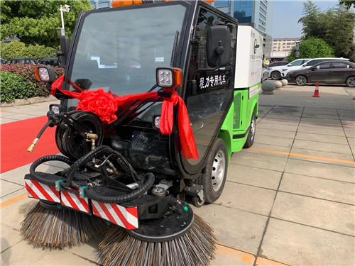 該機除清掃保潔功能外,還設計有推雪鏟、滾雪刷快速更換裝置,以實現路面積雪快速清除、清掃的功能;設計有高壓沖洗系統,以實現自清洗、污物高壓沖洗及園林綠化噴灑功能;配備手持抽吸軟管裝置,對綠化帶、下水坑等不易清掃的區域進行洗掃作業。從而實現一機多用的用途。