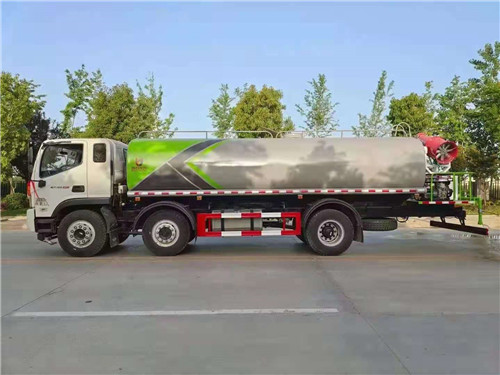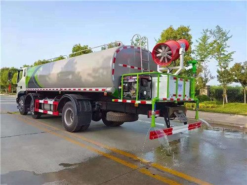 其 他:罐體5mm厚,標配特制防銹,采用60-90大功率灑水泵,標配前沖、后灑、側噴、高炮。可選裝大平臺安裝30-40米霧炮。