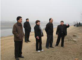 圖三:隨州市新市長李市長先生一行在大壩上考察湖北程力公司建橋的情況