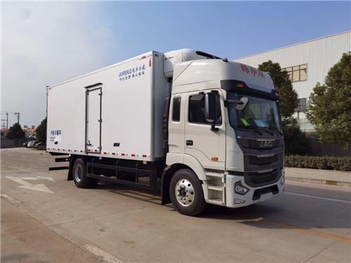 A5XIII高頂平地板駕駛室,康明斯B6.2NS6B245發動機,8JS95E-C變速箱,275/80R22.5 18PR輪胎,400升鋁合金油箱,9噸輕量化后橋,前彈簧后彈簧駕駛室支撐、鋁合金儲氣筒、整體式電動電加熱后視鏡、4G-TBOX、三級踏步、多功能方向盤、120A·h蓄電池冷車藏?廂體內配各?置裝選?要求和功能: