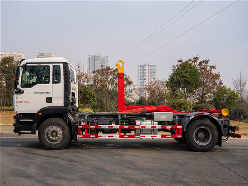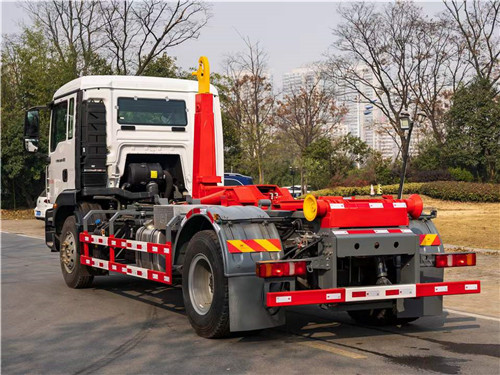 重汽汕德卡單橋勾臂式垃圾車圖片展示: