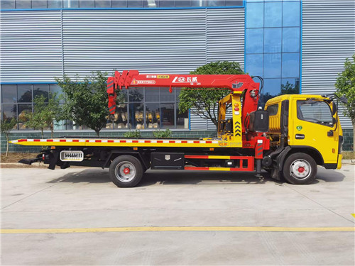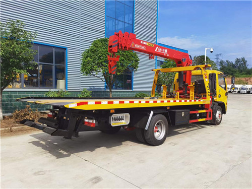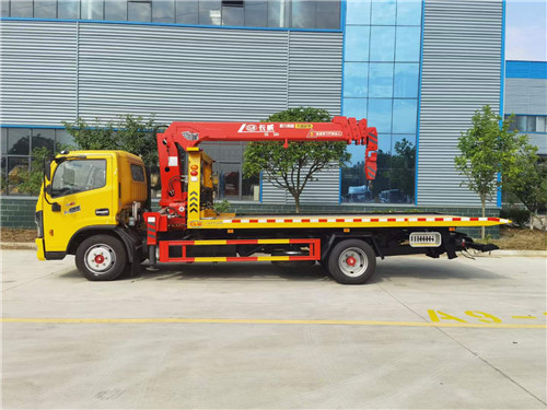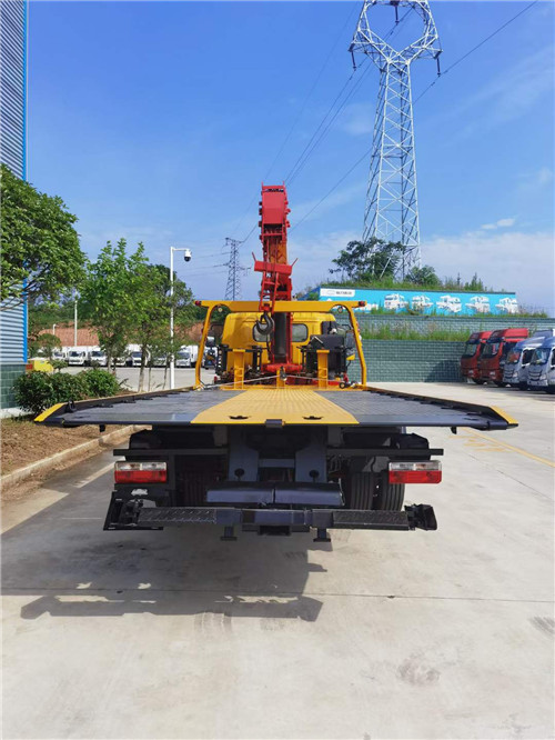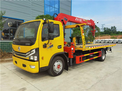 國六東風多利卡D8帶吊一拖二清障車匹配國六玉柴165馬力發動機,萬里揚6檔變速箱,軸距4400,245/70R19.5真空胎,5噸4節長威直臂吊,5噸板,5噸液壓絞盤,5噸后拖臂。
