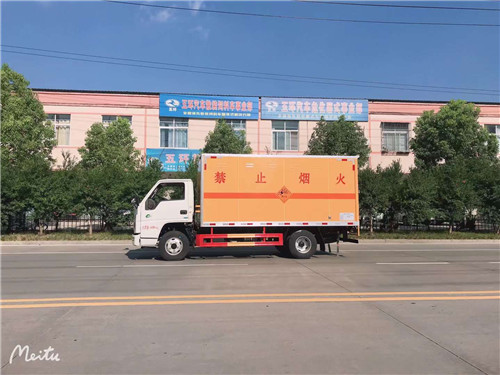 其它 | 隨底盤選裝駕駛室;該車為危險(xiǎn)品運(yùn)輸車,類型為EX/Ⅲ;廂體頂部密封,不可開啟,廂體兩側(cè)選裝不同形式側(cè)開門及開門位置或不帶側(cè)門,選裝瓦楞板結(jié)構(gòu).用于運(yùn)輸具有獨(dú)立容器(瓶)包裝的:黑火藥,壓縮黑火藥,電(非電)引爆雷管,爆破用,專用煙火制品,無煙火藥,糊狀火藥,爆破炸藥,導(dǎo)爆索,軟的,點(diǎn)燃導(dǎo)火索,射彈,帶有爆炸裝藥,聚能裝藥,不帶雷管,聚能炸藥,不帶雷管,非電引爆雷管組件,爆破用,油井用彈藥筒,固態(tài)推進(jìn)劑,動力裝置用彈藥筒,商品爆炸裝藥,不帶雷管.運(yùn)送爆炸品的項(xiàng)號: 1.1 D,1.1 D,1.1B,1.1B,1.1G ,1.1C,1.3C,1.1 D,1.1 D,1.4G,1.1D,1.1 D,1.1B,1.1B,1.3C,1.1C,1.3C,1.1D 。側(cè)/后防護(hù)材料為Q235,連接方式:焊接連接,后防護(hù)截面尺寸(mm):100×50,離地高度450mm。該車僅使用排氣管前置、前輪為盤式制動器、裝配子午線輪胎的底盤,轉(zhuǎn)向輪安裝輪胎爆胎應(yīng)急防護(hù)裝置,安裝導(dǎo)靜電帶;該車裝有ABS,ABS系統(tǒng)型號:APG3550500A,ABS系統(tǒng)生產(chǎn)廠家:浙江亞太機(jī)電股份有限公司;該車安裝具有衛(wèi)星定位功能的行駛記錄儀,該車裝配有限速裝置,限速80km/h。發(fā)動機(jī)型號對應(yīng)油耗申報(bào)值:JX4D30B6H/10.82L/100km,JX4D30A6H/11.4L/100km。 | ||