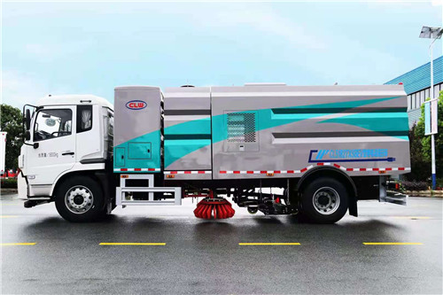 側,路面的頑固附著物由高壓噴水桿噴出的水流沖起,再由吸盤吸入垃圾箱儲存.具有綠色環保、功能齊全、