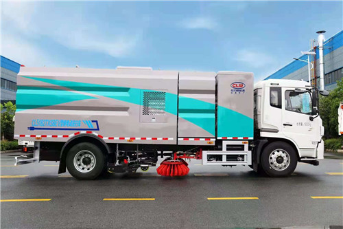 效果。開放式液壓系統驅動左右立掃升降、左右掃盤旋轉、吸嘴升降、垃圾箱后門開閉、垃圾箱傾翻復位等
