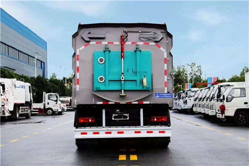 放裝置對污水進行排放,隨時加清水繼續作業;垃圾箱采用雙油缸自卸卸料,箱內同時設有大流量高壓噴嘴,