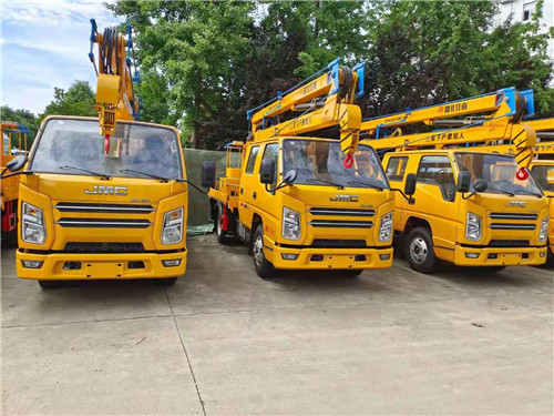 江鈴順達15米高空作業車采用折疊式曲臂結構,作業臂為三節折疊式,工作斗和轉臺雙工作位,上下操作,電液閥控制,可360度回轉,四液壓支腿,工作斗內可控制發動機啟停,大臂帶卷揚吊鉤系統,吊鉤吊重≤900kg,載人工作斗承重200公斤,鋼制工具箱和花紋防滑走臺板,不銹鋼圍欄。