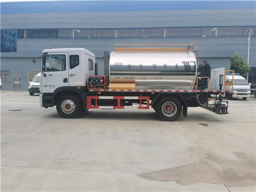 8噸東風(fēng)D9智能型瀝青灑布車,8噸智能瀝青灑布車上裝部分:高粘度瀝青泵QGB950。進口液壓比例閥。日升牌散熱器。安徽長源齒輪油泵。浙江寧波液壓馬達(AKS05-130)驅(qū)動瀝青泵。駕駛室內(nèi)觸屏及尾部平臺手動控制,對尾部 36個瀝青噴嘴一對一控制。升溫方式,柴油燃燒器(意大利利雅路G20)加熱導(dǎo)熱油循環(huán)升溫。配備7千瓦汽油發(fā)電機。灑布量:0.25-3.5L/㎡,灑布寬度4.5米。主要噴灑乳化瀝青、熱瀝青、SBS改性瀝青等