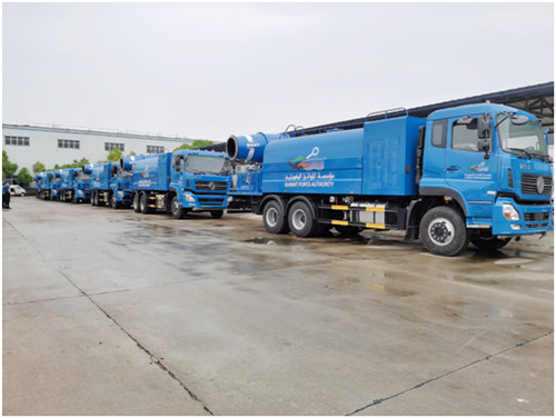 2.工作效率高、噴霧速度快;對容易引起塵埃的堆場噴水除塵時,噴出的霧粒細小、與飄起的塵埃接觸時,形成一種潮濕霧狀體,能快速將塵埃抑制降沉,霧量沉降率可達80-90%以上。