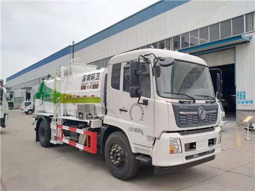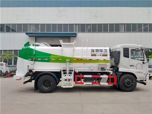 國六東風天錦餐廚垃圾車上裝配置:箱體容積12立方,箱體材質為普通碳鋼材質,提升裝置液壓鏈條結構,可提升一個120L或240L塑料垃圾桶,后門與箱體之間的密封應采用整圈膠條密封,箱體底部干濕分離,液壓全推板卸料,隨車清洗功能帶自動回味卷盤,箱內暗水箱,液壓主閥采用集成多路閥控制。