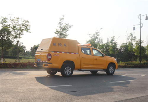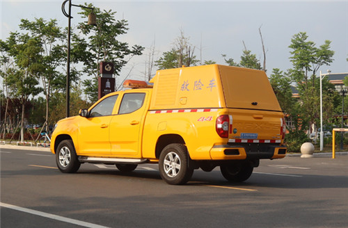 上汽大通500方皮卡排水車(chē)實(shí)用新型公開(kāi)了一種消防氣防車(chē),包括車(chē)體、駕駛室、艙體,其特征在于,艙體的前端為中隔板,該中隔板上設(shè)有推拉窗、液晶顯示屏、對(duì)講機(jī),艙體內(nèi)前部?jī)蓚?cè)設(shè)有折疊椅、中間設(shè)有折疊桌,該折疊桌上設(shè)有通信電臺(tái),艙體左側(cè)折疊椅的右側(cè)設(shè)有器材骨架Ⅰ,該器材骨架Ⅰ設(shè)有盛放發(fā)電機(jī)的機(jī)艙和多個(gè)置物艙,艙體右側(cè)折疊椅的左側(cè)設(shè)有器材骨架Ⅱ,器材骨架Ⅱ后側(cè)配備滅火器,所述艙體內(nèi)頂部設(shè)有消毒燈、滑動(dòng)輸液支架、升降照明燈,在艙體的中間設(shè)有上車(chē)擔(dān)架,在車(chē)體左側(cè)后門(mén)上設(shè)有折疊擔(dān)架,所述車(chē)體的上端設(shè)有長(zhǎng)排燈、外場(chǎng)照明燈、設(shè)備天線、通過(guò)玻璃鋼底座固定的閃燈。本實(shí)用新型的有益效果:結(jié)構(gòu)布置科學(xué)合理,綜合性、一體化程度高。