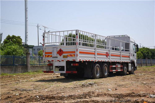 國六東風(fēng)柳汽前四后八氣瓶運(yùn)輸車,額載20噸倉欄配置:嚴(yán)格按照公告尺寸制作,底板采用5個厚花紋板制作,底板上鋪靜電膠皮,帶可卸式高欄,配備滅火器,三角頂燈,靜電拖帶等,嚴(yán)格按照國家危險品法規(guī)進(jìn)行“易燃?xì)怏w”標(biāo)識粘貼等