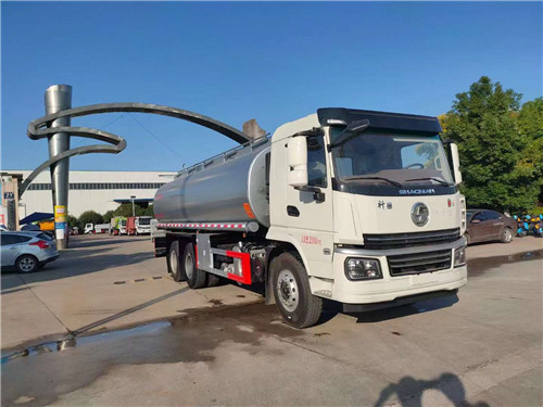 國六陜汽軒德后雙橋23方供液車上裝配置:嚴格按照公告尺寸外觀樣式制作,罐體厚度采用5mm優質碳鋼板制作,方圓罐,歐標罐口,海底閥,后面帶緊急切斷閥,駕駛室按開關,折疊護欄,水壓封頭,泵進泵出裝在右側80-60山東泵,兩邊雙開門箱子,鐵炮筒,圍邊內鋪防滑網,帶一個工具箱,后爬梯加粗,兩根直徑兩寸長的輸油管,帶牌照燈座,帶安全告示鐵牌,兩個滅火器,其余廠內標配。