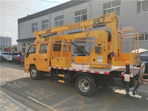 國六江鈴13米雙排藍(lán)牌高空作業(yè)車匹配115馬力發(fā)動機(jī),3360mm軸距,尺寸:5995*1990*3000mm,