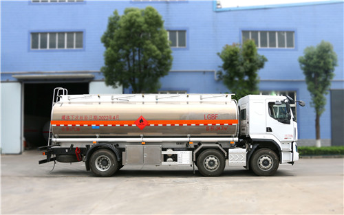 H5駕駛室,軸距2050+4050,玉柴YCS06270-60,法士特8JS105TA,2*5.5T盤式前橋,后橋440/4.875/加寬制動器,板簧3/3/-,282(8)車架,400L(鋁)油箱,12R22.5,前機械后氣囊駕駛室懸置、電動液壓翻轉、夾層玻璃、電動玻璃升降器、氣囊減震司機座椅、全新內飾、LCD液晶儀表、MP3+收音機、自動空調、定速巡航系統、國產閥、車載終端(行駛記錄儀+兼容北斗GPS)、外部遮陽罩、鋁合金貯氣筒、中控鎖、多態開關、真皮多功能方向盤、右轉提示音響、前置排氣管、前輪防爆胎裝置、盤式前橋、排氣火花熄滅器、危險品運輸頂燈、ECU限速裝置(限速80km/h)、駕駛室電源總開關、導靜電橡膠拖地帶、EBS、TPMS、LDWS、FCW、ESC、帶取力器....國六東風柳汽乘龍6X2網紅運油車圖片展示: