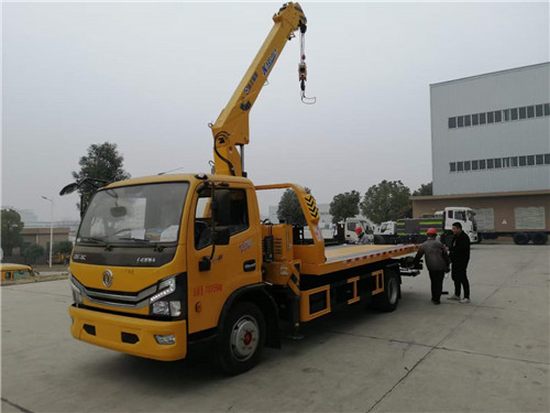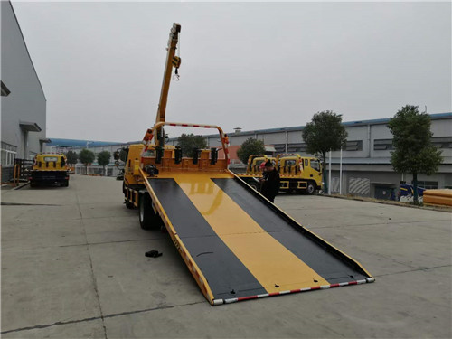 上裝配置,4mm厚度花紋板,4噸板,4噸拖臂,3噸絞盤,板長5.6米,板寬2.45米,國六東風D8清障車圖片展示: