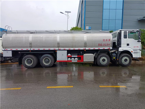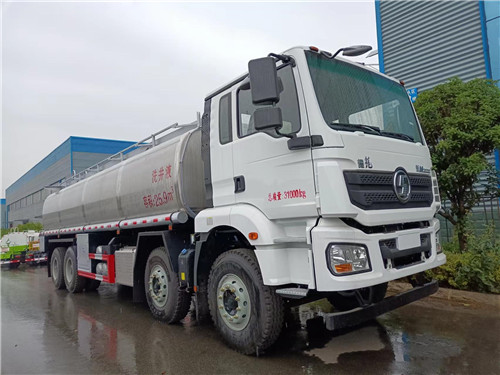 國六陜汽德龍前四后八供液車上裝配置:罐體容積27立方, 用食品級304-2B不銹鋼制作,厚度5mm,一個不銹鋼罐口,中下部一個3寸自流口,配不銹鋼閥門,罐頂帶碳鋼走道及升降防護欄,爬梯上部做成可拆卸式,確保整車高度控制在3.2米以內。