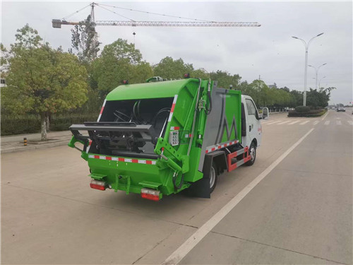 國六東風途逸3.5方藍牌后裝壓縮垃圾車上裝配置:弧形箱體,箱體采用錳板制作,容積3.5方,西門子PLC操控系統,帶一鍵操作,帶污水箱,帶爬梯,隨州多路閥,長源泵,帶駕駛室操作。尾部為掛桶機構(可掛2個120L/240L垃圾桶),其余標配。整車外觀及尺寸嚴格按公告執行。