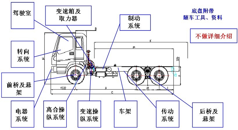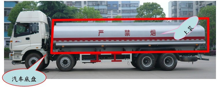 1、整車產品結構 :液體運輸車由汽車底盤和上裝兩部分組成。