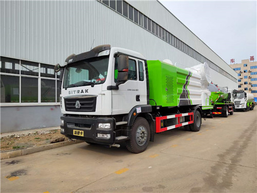 國六重汽汕德卡單橋多功能抑塵車現車!濰柴220馬力,容積12立方,可選裝50-100米各型霧炮。
