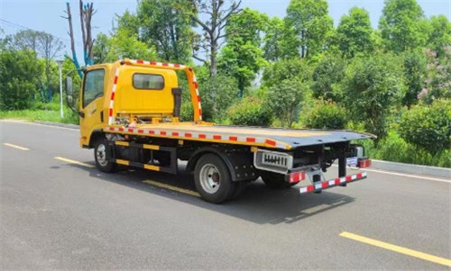 上裝配置:采用高強猛鋼沖孔板,雙側聯動操作裝置 ,一拖二型,1個4噸液壓絞盤(25米鋼絲繩),一個不銹鋼洗手箱,1個工具箱,擋胎器2個,4根綁帶。板長5.1米,寬2.3米。