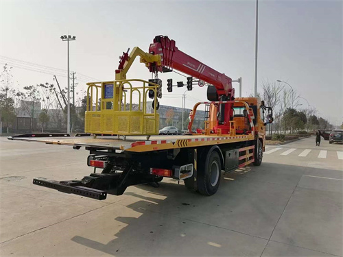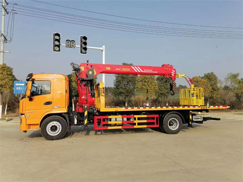 8噸4節臂徐工吊機8T上裝,10噸3節后托,配備一個80kn液壓絞盤,板長6.8米(主板5.6,尾部翻板1.2米);可做下沉板;花紋板,采用進口多路閥(標配),配有兩套活動托叉(高位低位),加一對活動高位座,叉座2個,一套簧板叉,外接氣管,無線遙控一套,可進行遠距離無線遙控;其余標配; 駕駛室前部加裝配重后,可以輕松抬起前四后八貨車或者半掛車,實力強勁。專業廠家,品質保證!