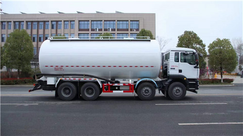 重汽汕德卡前四后八粉粒物料運輸車現貨,容積30立方上裝罐體采用WL610高強鋼板制作筒體4mm,封頭6mm,罐體有效容積28立方米【罐體直段長度6550mm*罐體直徑2500mm】,二倉二蓋(內吸式罐蓋),安裝蕪湖福達10.0空壓機,安裝一只7.2米卸灰管。